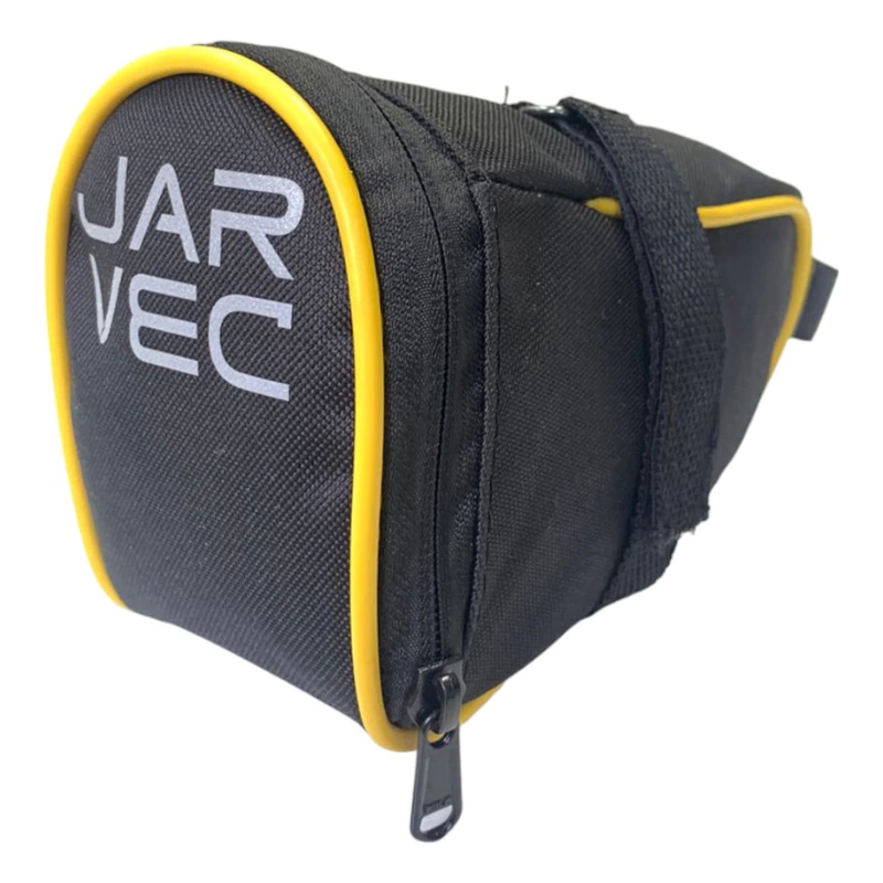 Bolso porta objetos con agarre bajo asiento JAR VEC para bici con logo reflectivo. Articulo multiuso ideal para llevar llaves, teléfono, documentos, barrita de cereal, etc. Se sujeta debajo del asiento agarre de velcro seguro. Producto resistente al agua.