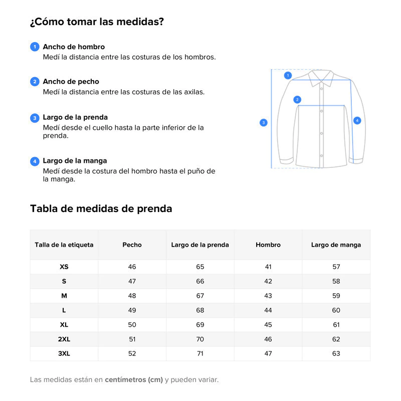 - Talles XS al 3XL