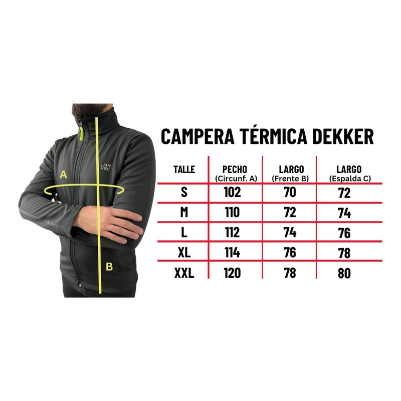 CAMPERA DE ABRIGO TERMICA DEPORTIVA JAR VEC MODELO DEKKER. Diseñada para aquellos que buscan una protección superior durante sus actividades y entrenamientos al aire libre para protegerse de bajas temperaturas, viento y lluvia. Recomendado para CrossFit, Funcional, Running, Ciclismo, Trekking, Bici, Bicicleta, Moto, Monopatín, Yoga, Pilates, Snow, Skate y mas.
