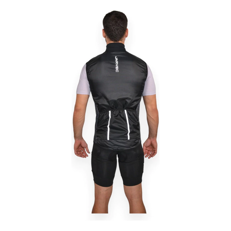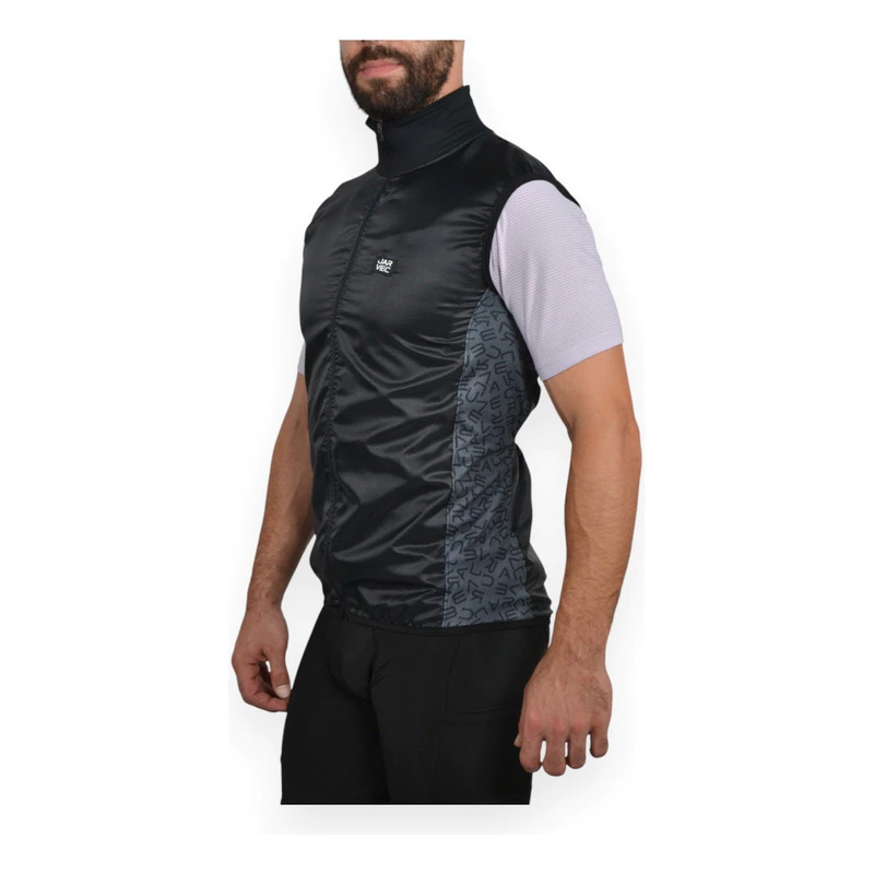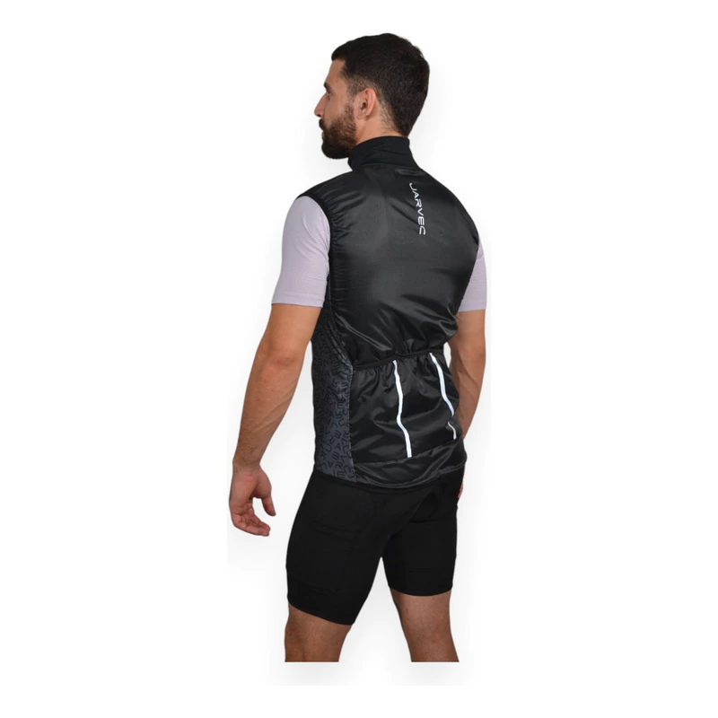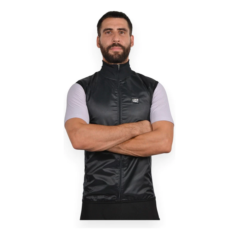 Chaleco sin mangas de ciclismo y running rompe viento ultra ligero JAR VEC modelo Evans Mix Stamp.