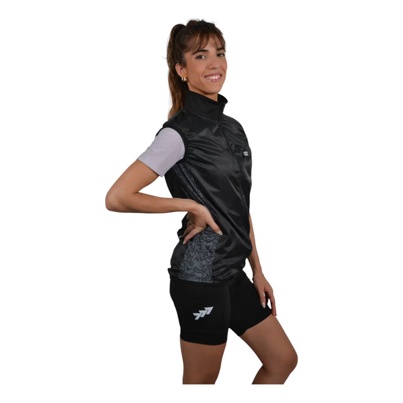 Chaleco sin mangas de ciclismo y running rompe viento ultra ligero JAR VEC modelo Evans Mix Stamp.